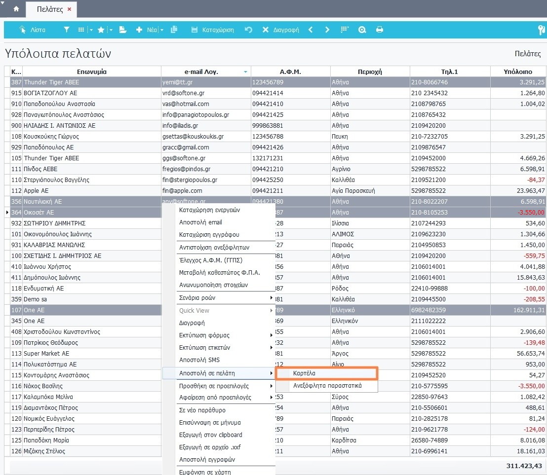 - Επιλέξτε τους πελάτες στους οποίους θέλετε να στείλετε την καρτέλα.