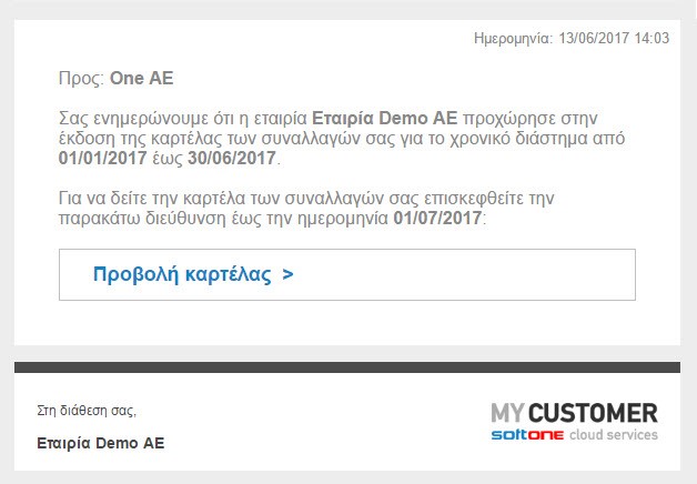 Ενέργειες πελάτη και ενημερώσειςΜέσα από το email, ο πελάτης μπορεί να επιλέξει “Προβολή καρτέλας” και να δε