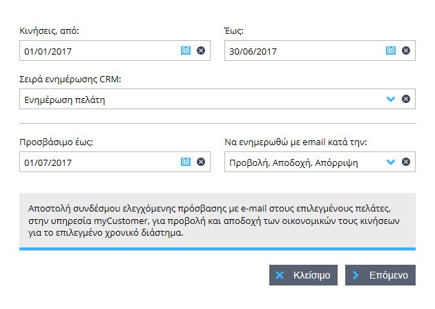 Για κάθε ενέργεια που πραγματοποιεί ο πελάτης, λαμβάνετε αυτόματη ειδοποίηση μέσω email, ενώ παράλληλα ενημερώνεται και το status της CRM ενέργειας στο σύστημα.